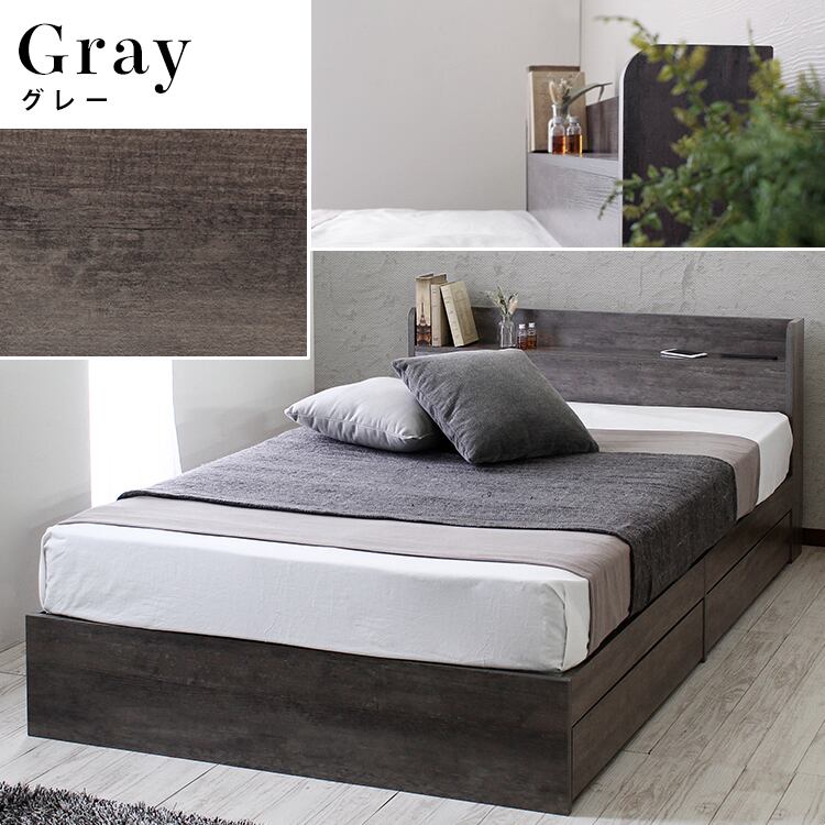 Sucre【シュクレ】引出し収納付きベッドフレーム ダブル USBコンセント付 引き出し2杯付