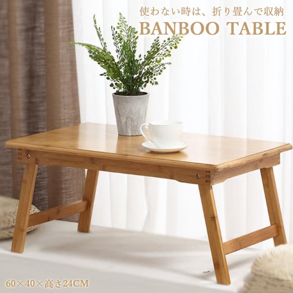 折り畳みテーブル 木製テーブル バンブー ローテーブル ナチュラル キャンプ PC 木製トレイ 小型 60×40