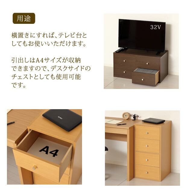 ●引出しはA4サイズが収納できますので、デスクサイドのチェストとしても使用可能です。