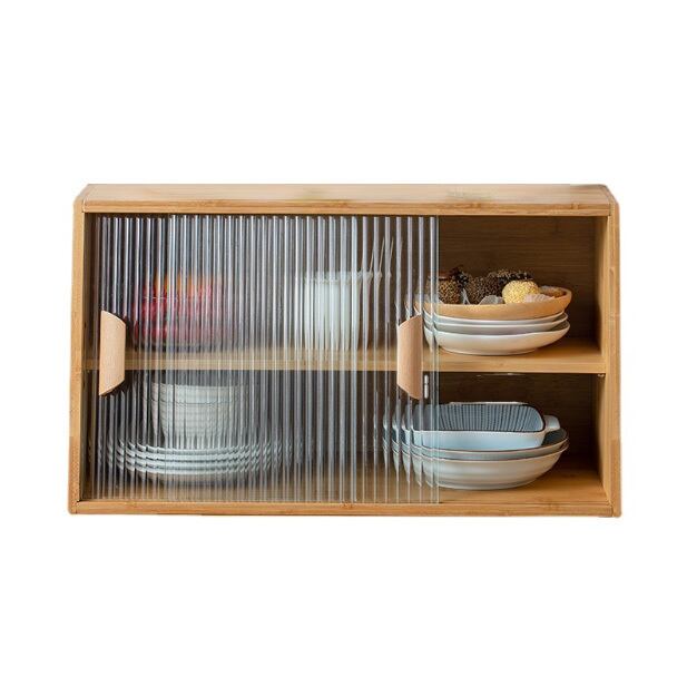 ・清潔感のあるガラス扉付きのキッチン収納ラックです。