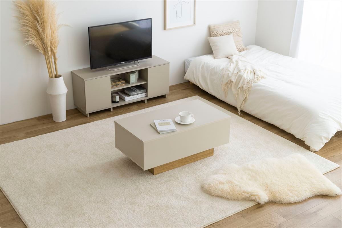 バイカラーの配色が特徴的な『Pom』引き出し付きセンターテーブル